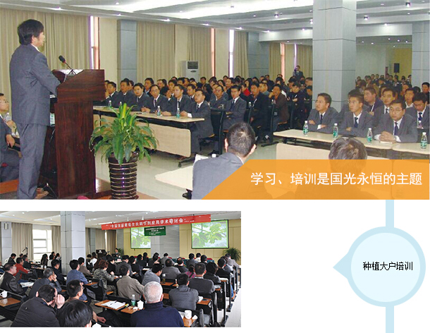 董事長(zhǎng)原來是師范校的教師,他把教書育人也帶到了國(guó)光企業(yè),從創(chuàng)業(yè)初期就重視對(duì)員工進(jìn)行培訓(xùn),而且還編寫技術(shù)資料對(duì)經(jīng)銷商和用戶進(jìn)行培訓(xùn)。早年的手寫保鮮劑資料就是一個(gè)例證,創(chuàng)業(yè)至今從沒有停止過對(duì)員工和用戶的培訓(xùn),每年新生入公司要進(jìn)行至少一個(gè)月的培訓(xùn),員工每?jī)蓚(gè)月要培訓(xùn)一次,年底全體員工還要學(xué)習(xí)培訓(xùn)近一個(gè)月。不僅對(duì)員工是這樣,國(guó)光每年 還把經(jīng)銷商、種植戶請(qǐng)到公司來培訓(xùn)學(xué)習(xí)。國(guó)光每年10月份起各種培訓(xùn)會(huì)議就不斷。這種學(xué)習(xí) 文化、學(xué)習(xí)型企業(yè)不僅培養(yǎng)了大量的優(yōu)秀員工和經(jīng)銷商,還給種植戶和同行留下了深刻的印象, 稱國(guó)光是業(yè)內(nèi)的黃浦軍校。