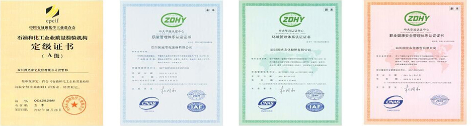 國光視產(chǎn)品為企業(yè)生命。公司通過了ISO19001質(zhì)量管理體系認(rèn)證,對產(chǎn)品生產(chǎn)流程進(jìn)行嚴(yán)格的質(zhì)量管理。國光質(zhì)管部是國家石油和化學(xué)工業(yè)協(xié)會認(rèn)定的“A級質(zhì)檢機(jī)構(gòu)”,配備了Agilent1100、1200A、1200B、1200C液相色譜儀、Agilent 6820氣相色譜儀、原子吸收分光光度計、原子熒光光譜儀等現(xiàn)代化的檢驗檢測設(shè)備。同時強(qiáng)化企業(yè)標(biāo)準(zhǔn)化建設(shè)和計量管理以確保產(chǎn)品質(zhì)量。