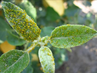若蟲從蘋果樹開花后即在蘋果新梢上吸取汁液,產(chǎn)生黑褐色刺點或孔洞,嚴重的整葉出現(xiàn)很多孔洞,致蘋果葉畸形或破裂,新梢不能生長甚至死亡,影響光合作用和樹體生育。在幼果面上刺吸造成壞死點,隨幼果生長,壞死點處形成術栓化組織。