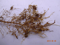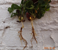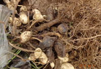 癥狀:花生根結(jié)線蟲病主要為害植株的地下部,因地下部受害引起地上部生長發(fā)育不良。幼苗被害,一般出土半個月后即可表現(xiàn)癥狀,植株萎縮不長,下部葉變黃,始花期后,整株莖葉逐漸變黃,葉片小,底葉葉緣焦灼,提早脫落,開花遲,病株矮小,似缺肥水狀,田間常成片成窩發(fā)生。雨水多時,病情可減輕。