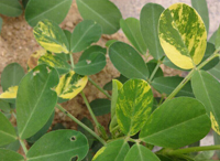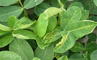 癥狀:花生出苗后即見發(fā)病。初在頂端嫩葉上現(xiàn)褪綠黃斑,葉片卷曲,后發(fā)展為黃綠相間的黃花葉、網(wǎng)狀明脈和綠色條紋等癥狀。病害發(fā)生后期癥狀有減輕趨勢。