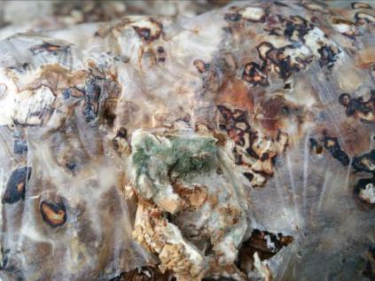 春季溫度回升,菌棒上殘留的菇根等雜物易感染霉菌,發(fā)生霉變。因此,采菇后,要及時(shí)清除菌棒上殘留的菇根等雜物,防止雜菌感染。春季危害香菇常見(jiàn)的害蟲主要有菇蚊、菇蠅等,可在出菇間隔期使用氯氰菊酯等低毒農(nóng)藥進(jìn)行防治。
