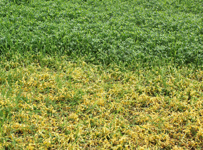 下圖為空心蓮子草危害禾本科草坪