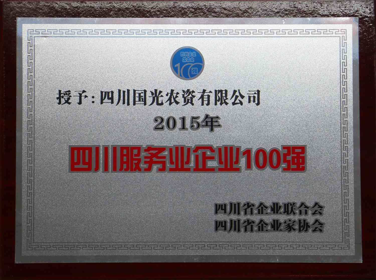 2016年1月15日,由四川省企業(yè)聯(lián)合會/企業(yè)家協(xié)會召開的第八屆三次理事會全體大會暨2016年企業(yè)家年會上國光公司及子公司分別榮獲2015年《四川制造業(yè)企業(yè)100強(qiáng)》、《四川服務(wù)業(yè)企業(yè)100強(qiáng)》稱號。