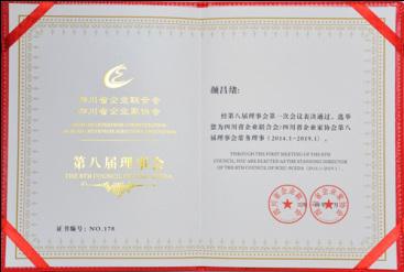 2014年1月,經(jīng)第八屆理事會第一次會議表決通過,公司董事長顏昌緒先生選舉為四川省企業(yè)聯(lián)合會/四川省企業(yè)家協(xié)會第八屆理事會常務(wù)理事。