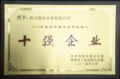 我公司的全資子公司“四川國(guó)光農(nóng)資有限公司”被評(píng)為2013年度資陽(yáng)市“服務(wù)業(yè)營(yíng)業(yè)收入十強(qiáng)企業(yè)”,在會(huì)上受到表彰。