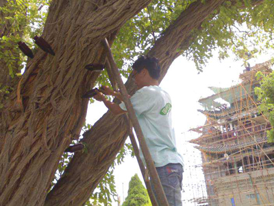 據(jù)駐寺學(xué)員納新輝介紹,2004年之前兩棵槐樹年年開花,2004年之后卻突然沒了動(dòng)靜,大家都以為它們要“不行了”。 2011年,永寧縣林業(yè)局派專家前來為老樹“看病”并開出“處方”。經(jīng)過三年多“治療”和“休養(yǎng)”,兩棵百年古槐再次鮮花怒放,恢復(fù)了往夕風(fēng)采,成為納家戶一道靚麗風(fēng)景。