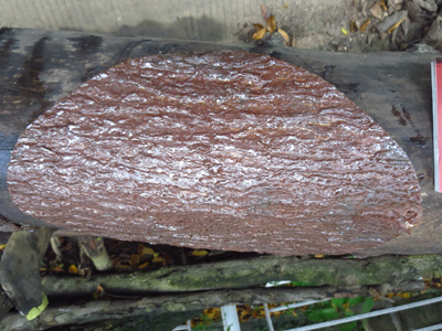 2、用ACQ木材防腐劑或熟桐油分別涂刷挖好的樹(shù)洞,一種防腐材料涂抹一半的樹(shù)洞(圖2);